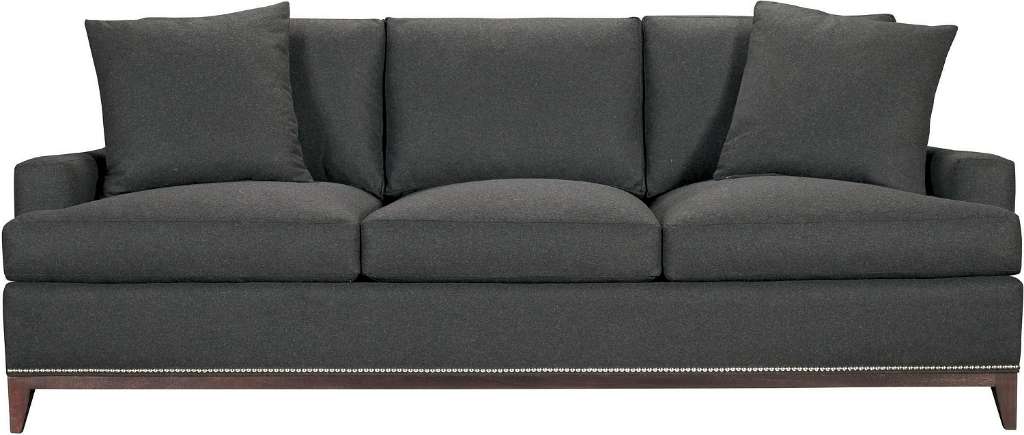 The 9th Street Sofa is named for the home of our Hickory Chair workroom and offices, where we’ve been making one-of-a-kind fine furniture to order for 100 years. The form is interpreted from a vintage Hickory Chair sofa from the 1960’s. With a very crisp, architectural form, the 9th Street upholstered series has a distinctively squared track arm, T-cushion seat and streamlined exposed lower rail with tapered posts constructed in solid mahogany. Two 20-inch 100% goose feather throw pillows standard in fabric. When ordering this item in leather, please note that pillows are not included and must be purchased separately. To match the standard pillows included with the fabric version, order an additional quantity of pillow SKU HC920-96. 3-piece Luxury Spring-Down seat cushion and Blend-Down back cushions standard. Optional NS-03 nail trim shown. The series includes a chair and ottoman as well as Made To Measure in lengths from 32 to120-inches and as a Made To Measure ottoman.