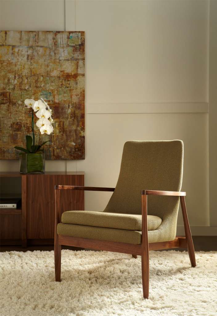 The solid Walnut or Gray Ash base securely cradles the contoured, comfy seat structure. With subtle curves and refined style, this accent can easily be paired with several different styles.