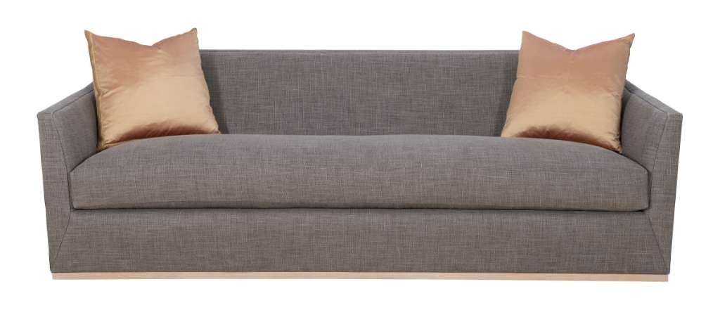 Designed with both form and function in mind, the Aiden Sofa elevates the art of relaxation. The Aiden strikes a perfect balance between structured elegance and inviting comfort. Its crisp, faceted lines define a distinctive exterior silhouette—making it a sofa that deserves to be showcased. Expertly tailored upholstery and a solid white oak plinth base enhance its refined yet livable aesthetic, ensuring a seamless fit in both modern and transitional spaces. Two 20" x 20" knife edge throw pillows standard. When ordering this item in leather, please note that pillows are not included and must be purchased separately. To match the standard pillows included with the fabric version, order an additional quantity of pillow SKU HC920-96. Solid fabrics or small prints are advisable on this frame, Stripes and plaids will not flow match on the back of the frame.