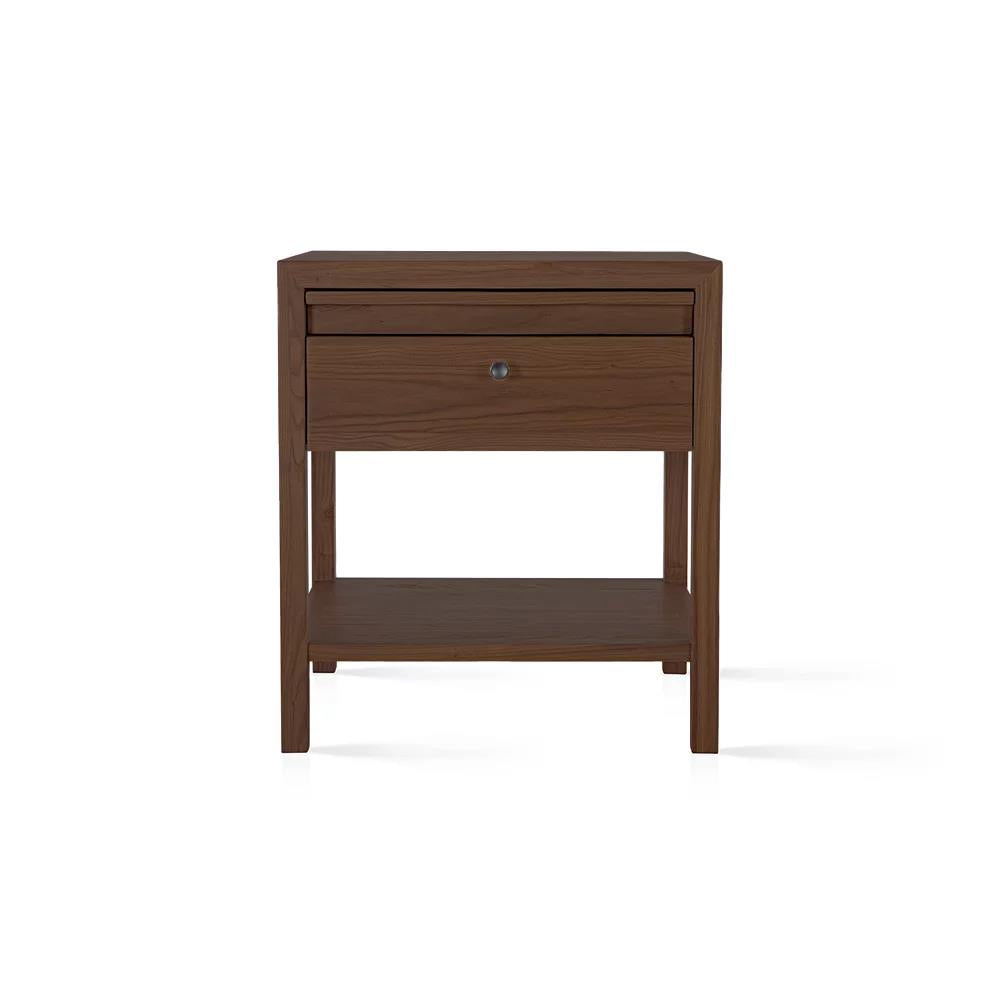 The Aldus 24" Nightstand is a graceful and versatile accent to any bedroom setting. The piece is made of solid white ash using Maria Yee's BreathingJoinery™ system. The sleek, minimal profile is as utilitarian as it is elegant, offering both concealed and open storage for diverse multi-functional use as a small case unit. The upper tray is lined in luxurious top grain leather. Unsure about color? Order a color swatch here.