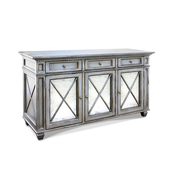 Finish: Vintage Silverwith Antique Mirror InsetsWidth: 62” | Height: 34” | Depth: 22”