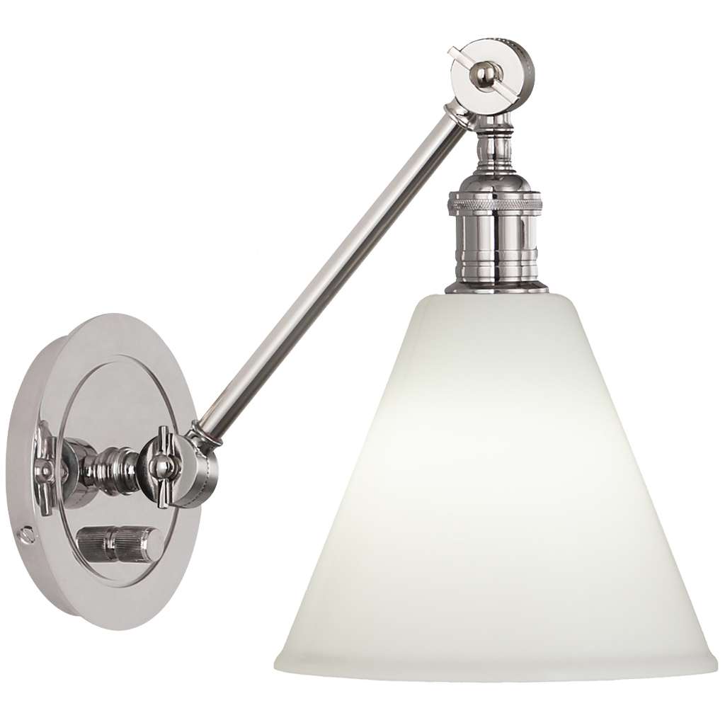Polished Nickel And Cased White Glass Shade W/ Polished Exterior