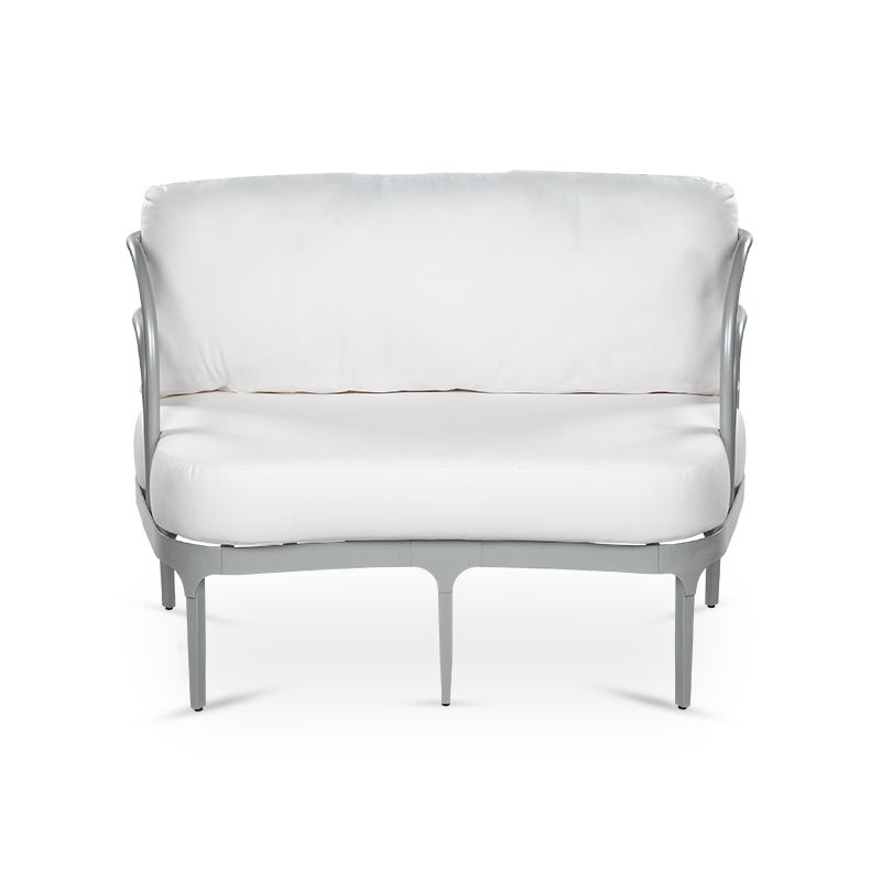 **AVAILABILITY SHOWN IS FOR FRAME ONLY. PLEASE CALL OR EMAIL FOR CUSHION AVAILABILITY** Designed with an art deco style reminiscent of the Roaring Twenties this loveseat fuses symmetry with subtle curvature and a dramatic thick cushion for style and comfort.