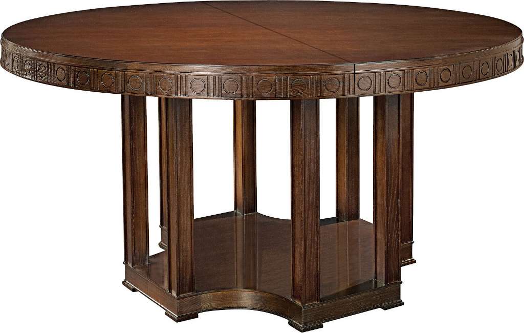 The original Arden Dining Table was designed to be used as a center, library, kitchen or dining table. The Arden is now available as a Round Extension Table with one 24-inch leaf. Crafted in ash, the Arden table top has a distinctive carved apron featuring circles and vertical lines. The Arden base has columns mounted to a sculptural base. The Arden tops and bases are available individually and are part of our Personal Preference Dining Table program that allows you to pick the top and base of your choice to create a one-of-a-kind dining table. When pricing this item must price the top and base separately.