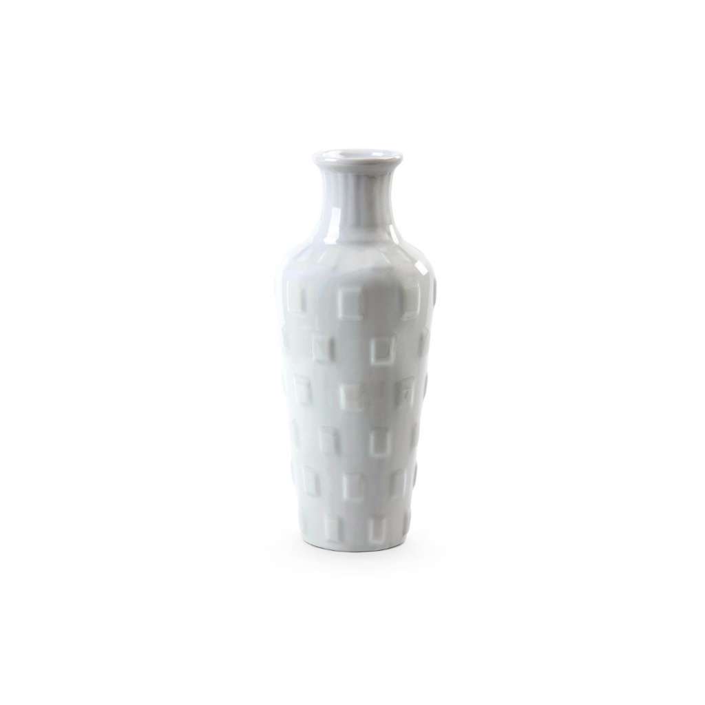 The Argo Vase showcases a modern style with its sleek glazed porcelain finish, offering a contemporary appeal to a classic shape. Raised rectangular details add striking graphic interest, creating texture and depth. Perfect as a statement piece or part of a curated display, the Argo Vase blends artful design with functional elegance.