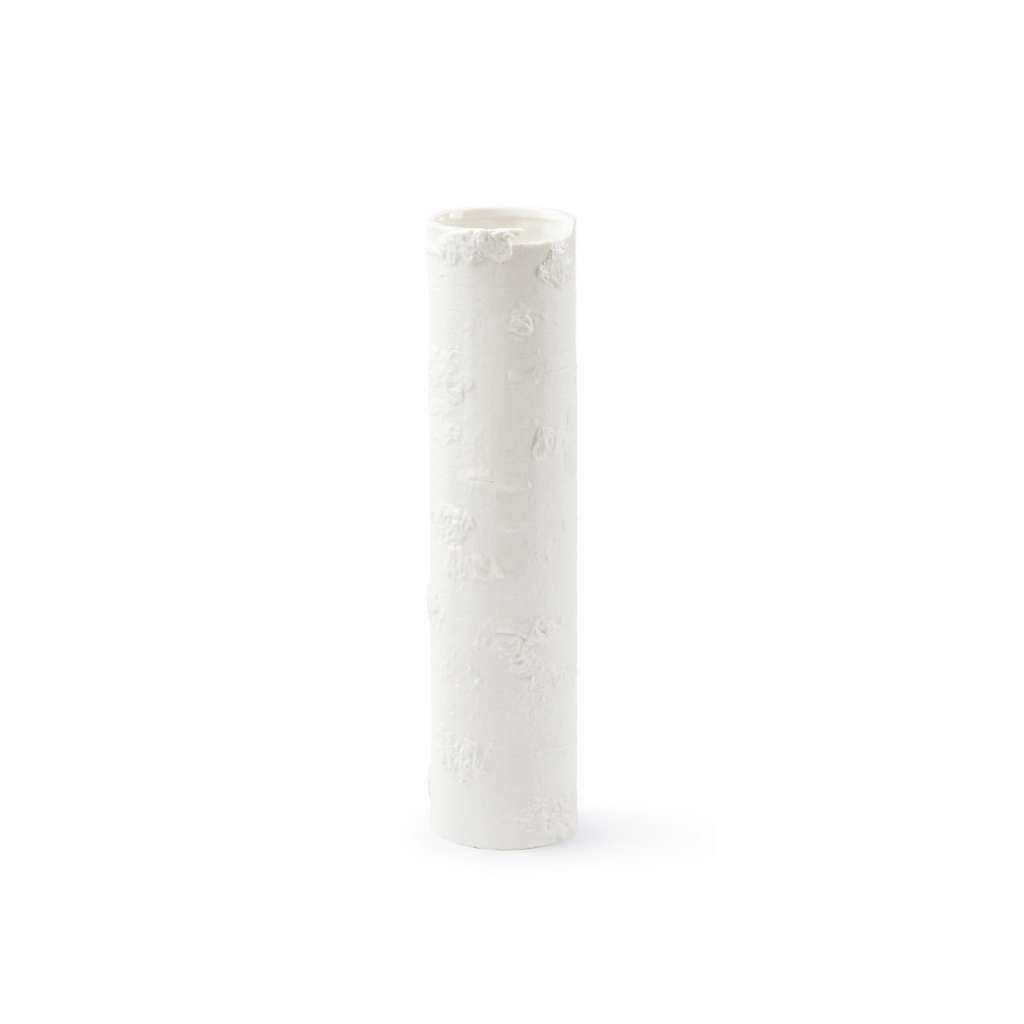 The Aspen Vase Collection is a naturalist study of texture. Finished in a matte glaze and offered in two sizes, these slim Blanc de Chine vases reflect the beauty of a gentle woodland. The lifelike bark texture is accented with slim notches that mimic tree knots offering a creative way to vary your floral arrangements. These birch-inspired vases infuse an element of provincial serenity into your home while also providing dimension and function.