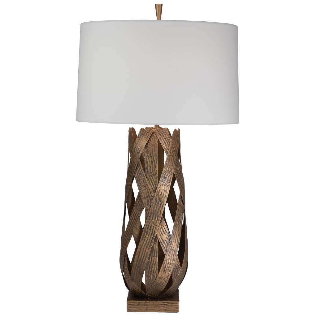 9109- AUBURN ●Gilded Iron 35.5″H Shade: AUBURN 89016 – 18x19x11″ Rnd Drum Sailcloth White 89016 – 18x19x11″ Rnd Drum Sailcloth White