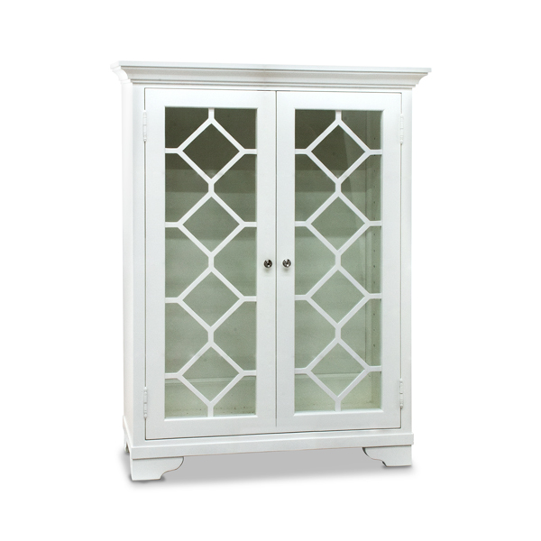 Finish: Stark WhiteHardware: August Knobs in ChromeWidth: 43” | Height: 58” | Depth: 17”