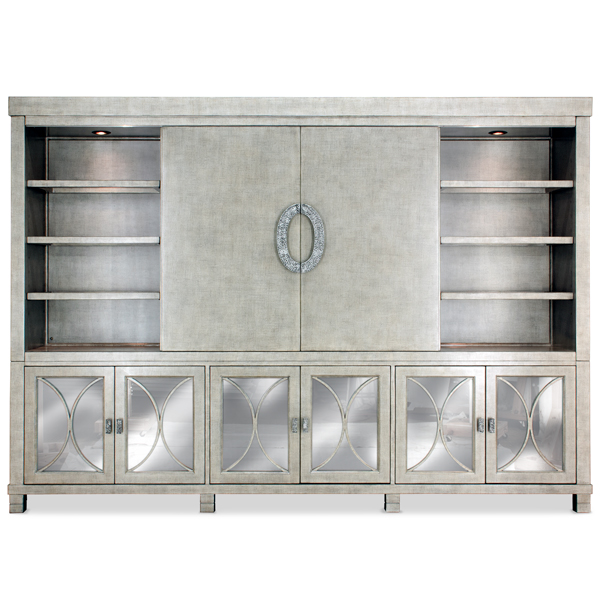 Finish: Iron FrostHardware: Baker Pulls in Antique SilverStandard Mirror behind MullionsOverall Width: 124” | Overall Height: 88” | Depth: 20”Lower Section Height: 34” | Upper Section Height: 52”