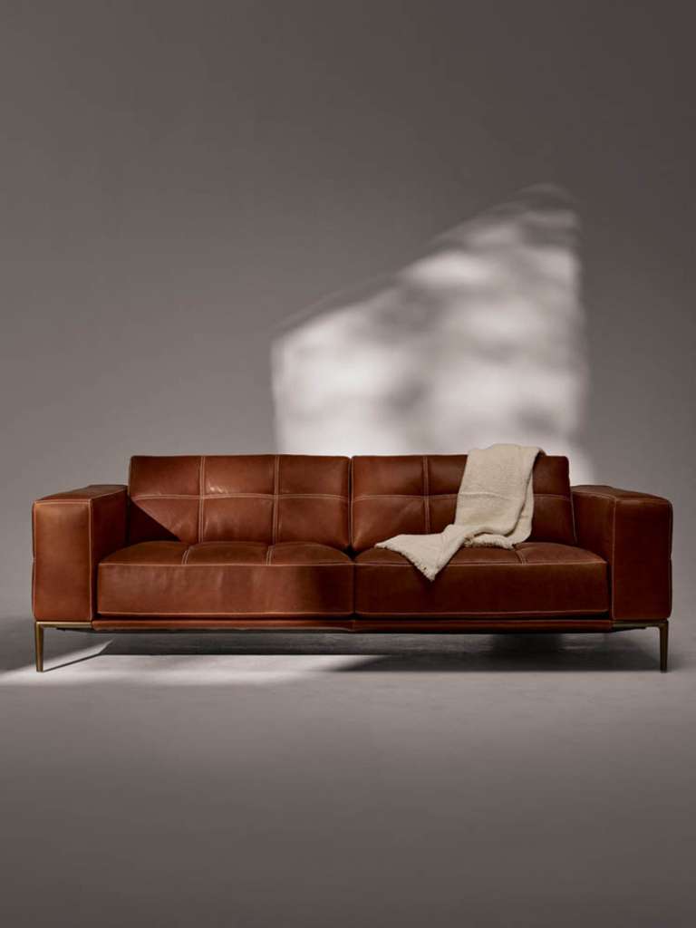 Double-needle quilting combined with single-needle top-stitching adds a dramatic spin to this collection. Choose from a variety of contrasting thread colors or match it to your choice of upholstery. Barcelona sits atop aluminum legs in your choice of black, bronze, or a polished finish.