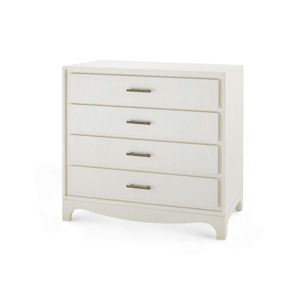The Barrett Collection is defined by its crisp geometry and refined detailing. Each piece features a deeply inset drawer front, creating subtle shadow lines and visual depth within its rectilinear frame. Wrapped in clear lacquered grasscloth, the surface highlights natural texture with a clean, modern finish. A gently curved decorative apron softens the silhouette, adding a graceful touch that balances the structured form. Satin bronze-finished hardware completes the look, adding a warm metallic accent that enhances the collection’s tailored aesthetic. With its thoughtful proportions and material richness, the Barrett Collection offers a sophisticated take on everyday storage and style.
