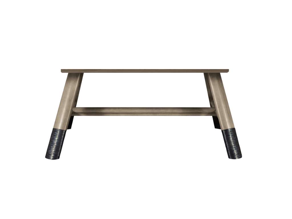 The Baylis Expansion Dining Table Top is made from American walnut veneers, standard with two 24-inch leaves. The Baylis Trestle Base was developed as the perfect complement and is a part of the Personal Preference Dining Table Program, you may select from a variety of other bases to create a custom table for your home. A modern interpretation of a common primitive base, the Baylis Trestle Base features uniquely shaped posts and stretchers in solid ash and capped with Antique Bronze ferrules. The ferrules with their exaggerated height are a distinguishing characteristic and add a modern flair to the primitive design. The Baylis Trestle Base is standard in Dark Walnut finish.