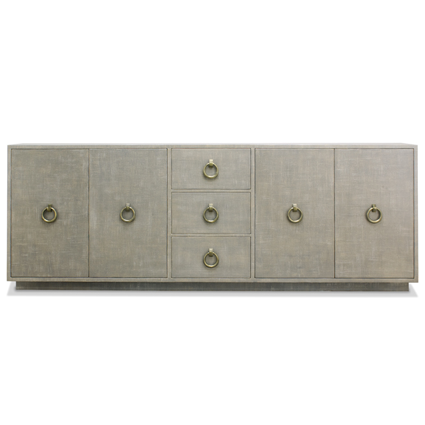 Finish: GreyscapeHardware: Belgium Pulls in Antique BrassWidth: 110” | Height: 42” | Depth: 16”