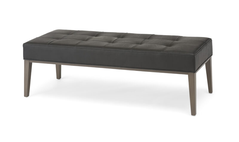 Design a bench or ottoman to fit your space and style with Custom Choices. View the customizable program through the collection link. Bench shown B02 60″ x 22″ Rectangle T Tight Top 4 Biscuit Tuft TT Tapered Wood Leg with Trim