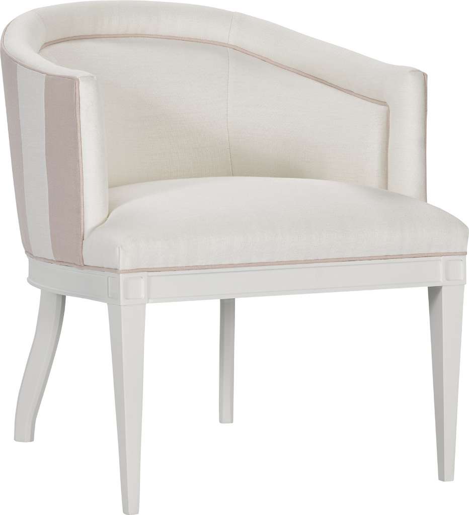 One of the most distinctive pieces in Suzanne Kasler's collection is the Bennett Chair. It has wonderful traditional lines but with Suzanne's design prowess, it transcends modern and classic design. It has a shapely and very comfortable barrel back chair with a decorative border on the interior. As shown you can see how a contrast fabric can highlight this unique detail.
