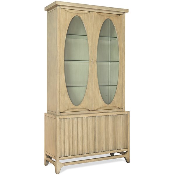 Exterior Finish: Savannah SandInterior Finish: Sea GrassHardware: Hex Knob in Antique BrassTouch Latch DoorsInterior Touch LightsAdjustable Glass Shelves
