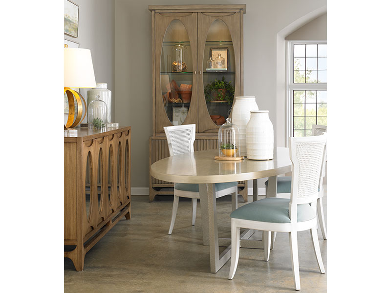 Products Shown:Carrick Oval Dining Table 19543A Bishop Buffet 19974C Bishop Cabinet 20096AAvailable in all OBD FinishesCustom sizes available