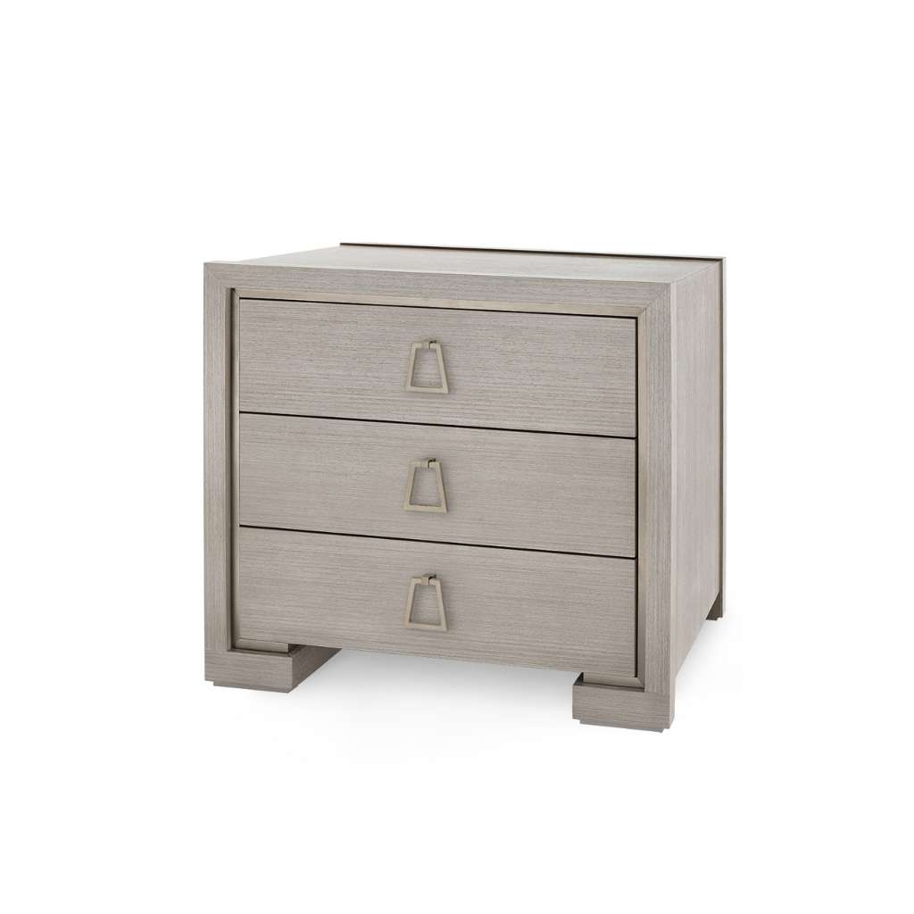 Art Deco glamour is met with architectural design in our Blake Collection, marked by subtle contouring of its sleek edges along with distinct details, such as the L-shaped legs, which cut an elegant figure. The Blake 3-Drawer Side Table appears as a jewel box in a living room or bedroom, crafted from wood and lacquered to give it a luxurious sheen. Three drawers, each with veneered interiors on soft-closing glides, are framed by a recessed champagne finish border and made complete with an oversized pull.