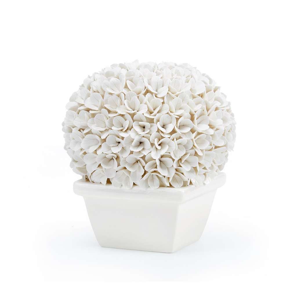 Finally, a beautiful plant that you don’t have to remember to water. The Boston Round Boxwood Topiary is an everlasting floral accent, rendered in Blanc de Chine porcelain and brought to life in stunning detail by our meticulous artisans. Each delicate leaf is crafted by hand before coming together to form a wonderfully realistic arrangement, made elegantly minimal by its all-white finish. The leaves of the topiary boast a textured matte finish, distinguishing the form of the plant from its glossy built-in pot. Place on any shelf or surface calling for a bit of romanticism à la the grand French gardens of the past.