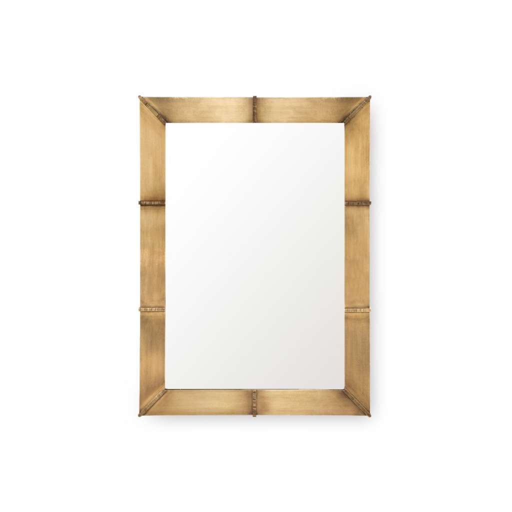 With its broad frame of antique-finished brass, the Brea Mirror brings dignified warmth, doubling as a functional piece and a sophisticated accent. A classic rectangular shape keeps the Brea anchored in tradition, as its embellishments of delicate, hand-hammered metallic ribbons speak to the quality of its craftsmanship. The glint of its subtle golden sheen is sure to catch the eye from across the room, instantly drawing you in for a gaze at both your reflection and the fine detailing bordering it. Either hung vertically or horizontally, this piece boasts unparalleled presence.