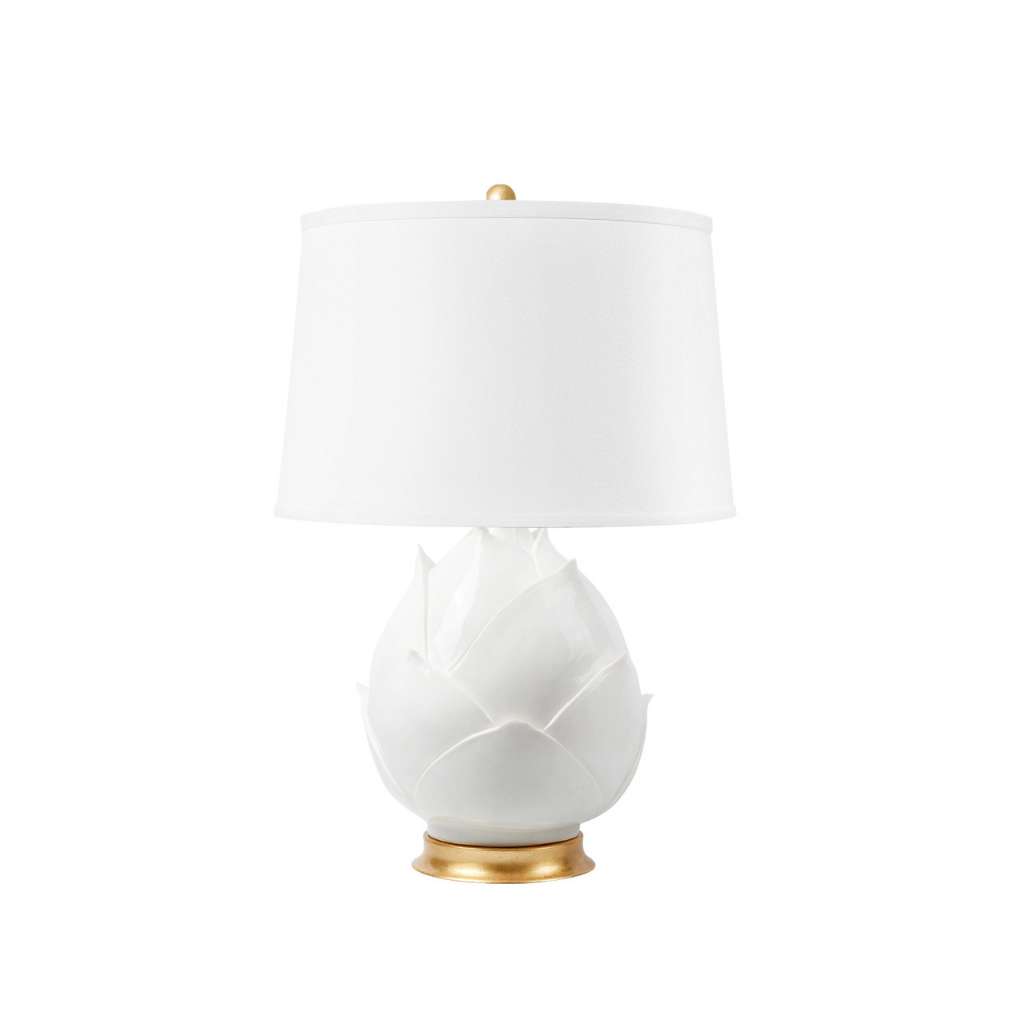 BUDDING LAMP WITH SHADE 17-INCH WHITE LINEN, WITH GOLD, BLANC DE CHINE