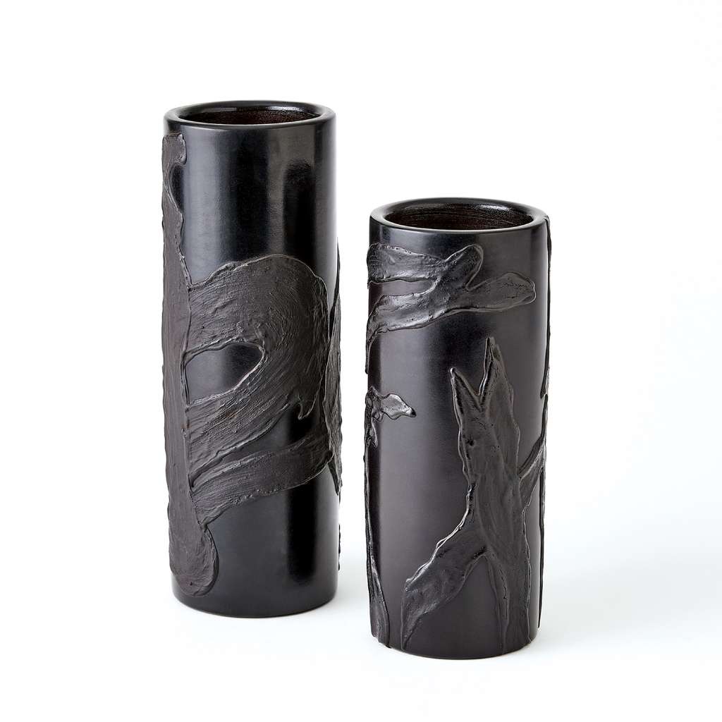 Catacaso Vases are constructed of Peruvian ceramic with hand drawn details and a black finish.