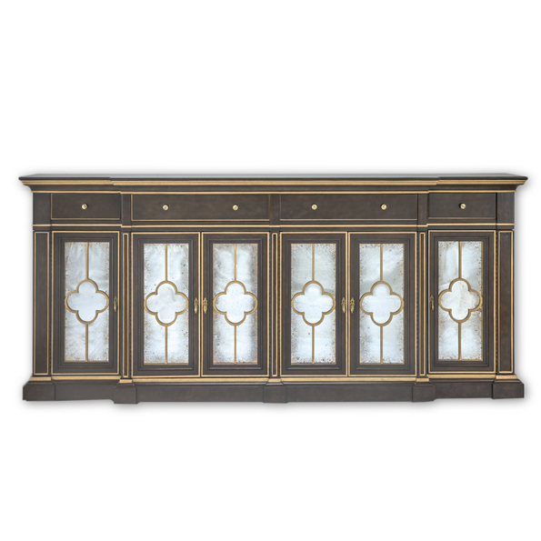 Shown in Tavern Walnut with Solaria Trim, Antique Mirror Insets on Doors