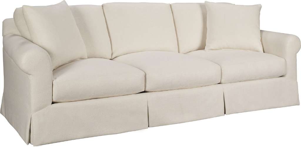 Celine was inspired by the large, luxuriously comfortable sofas that are found in European country homes. The deep seat and relaxed look makes it appropriate for casual living as well as more formal settings. Celine’s arms have an elegant slope from the back to the termination of the sock arm. The skirted version shown features soft dressmaker tailoring. Two 22-inch 100% goose feather throw pillows standard in fabric. 3-piece Luxury Spring-Down seat cushion and 3-piece Blend-Down back cushion standard. The Celine is available Made To Measure M2M® both as the exposed leg version (HC1519-51) and also with a dressmaker skirt (HC1520-51).