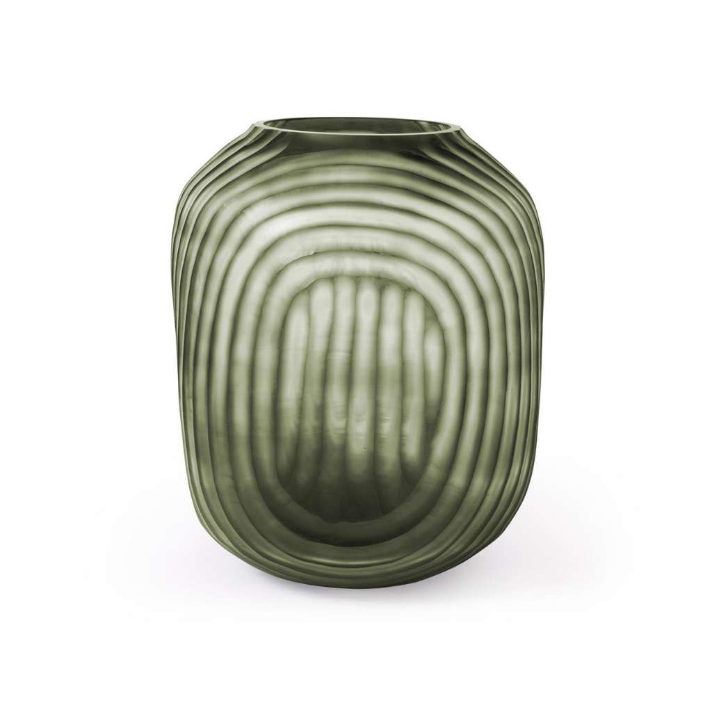 Crafted from hand-blown multi-layer glass, the Circle Vases feature mesmerizing circular bands that create a dynamic visual experience. These vases are elevated by the cool nori green hue, adding depth and intrigue to their already captivating charm.