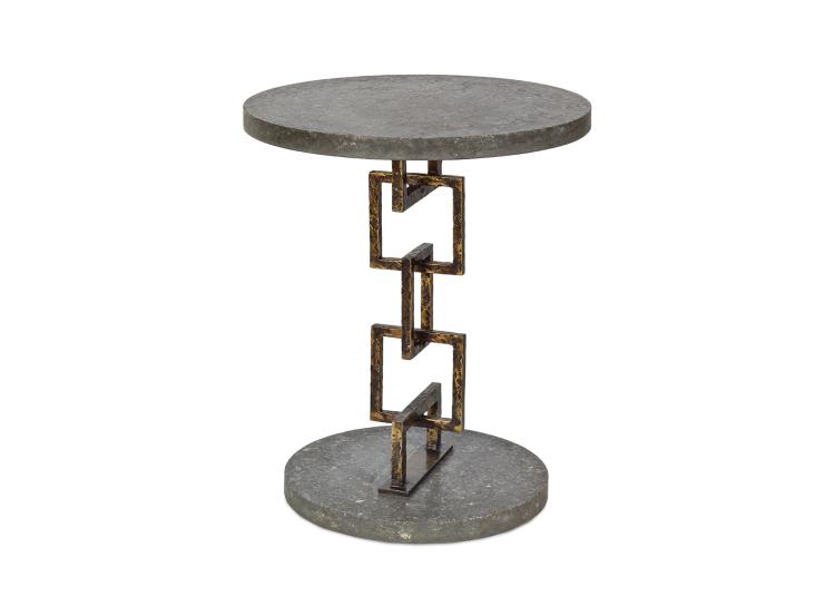 W 22 D 22 H 24 Wrought Iron Curcuit Chairside Table with Cast Stone Top In Stock Buy Now