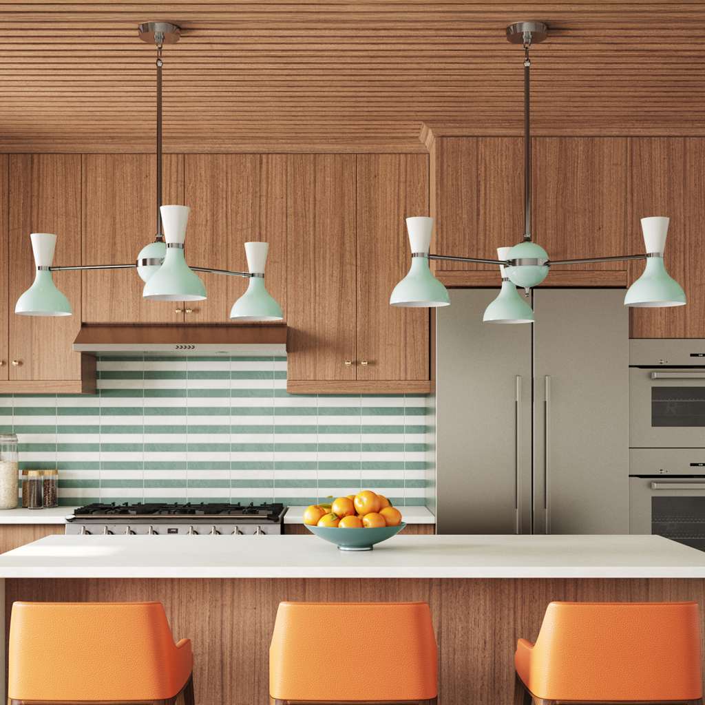 Polished Nickel Chandelier With Mint And Lily Painted Shades