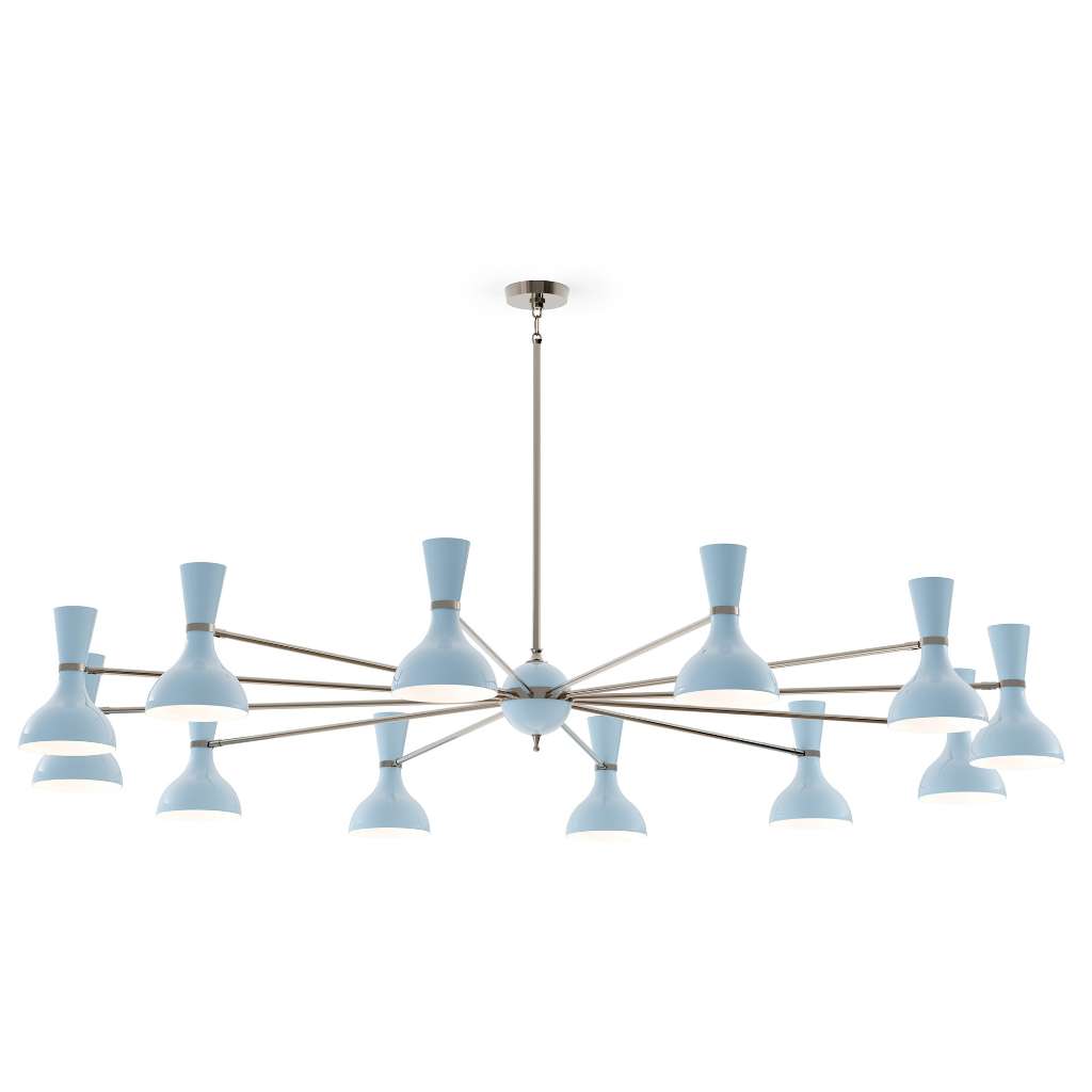 Polished Nickel Chandelier With Baby Blue Painted Shades