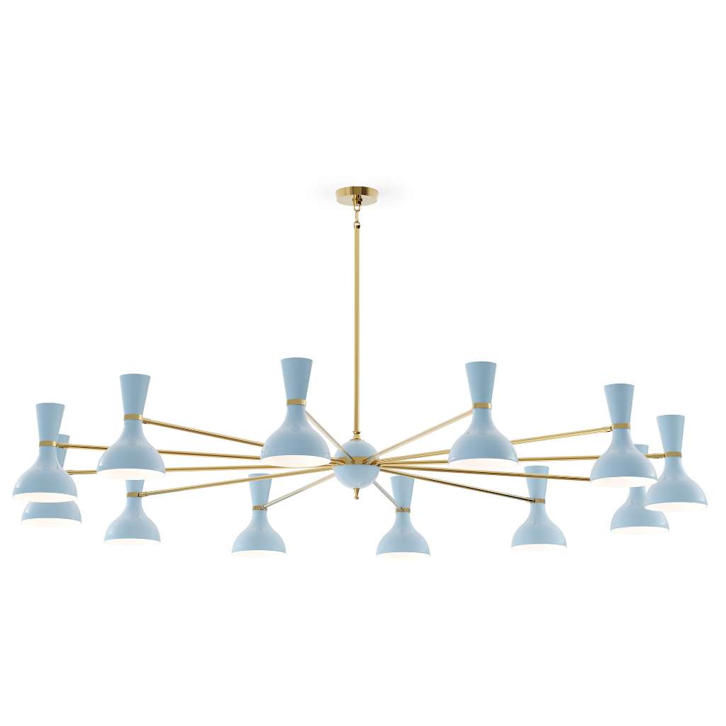 Modern Brass Chandelier With Baby Blue Painted Shades