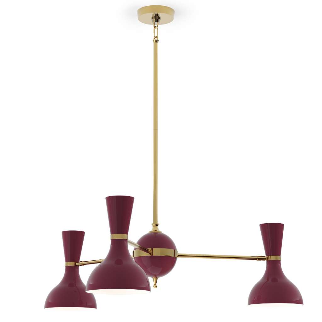 Modern Brass Chandelier With Sugar Plum Painted Shades