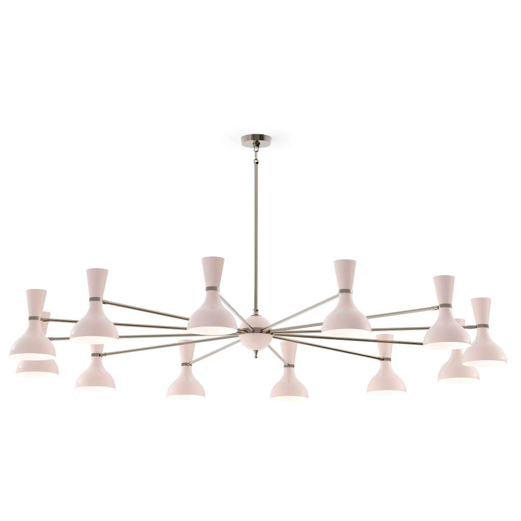 Polished Nickel Chandelier With Rose Water Painted Shades