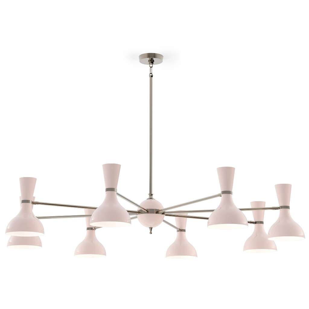 Polished Nickel Chandelier With Rose Water Painted Shades