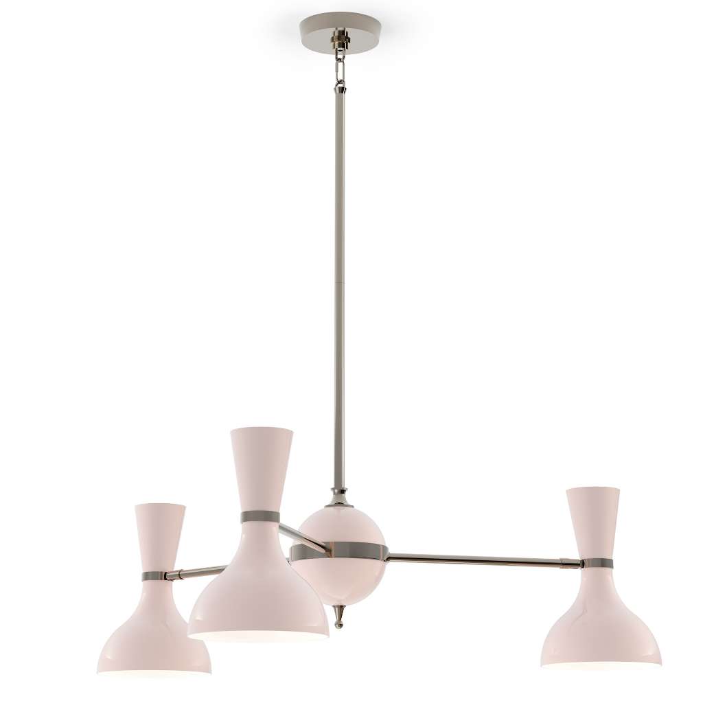 Polished Nickel Chandelier With Rose Water Painted Shades