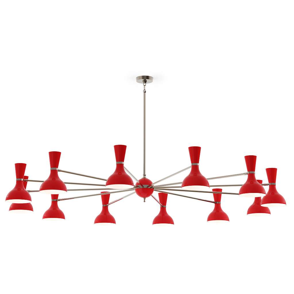Polished Nickel Chandelier With Obsidian And Bone Painted Shades