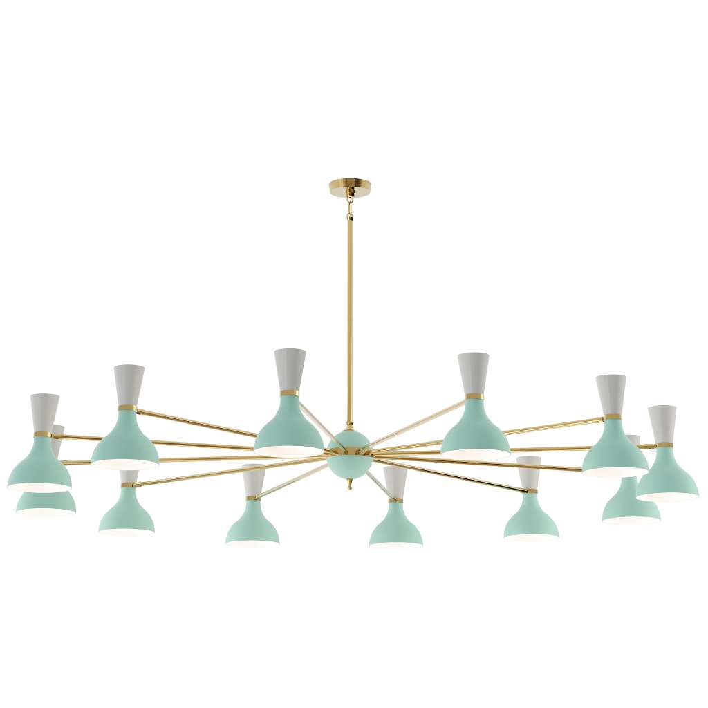 Modern Brass Chandelier With Mint And Lily Painted Shades
