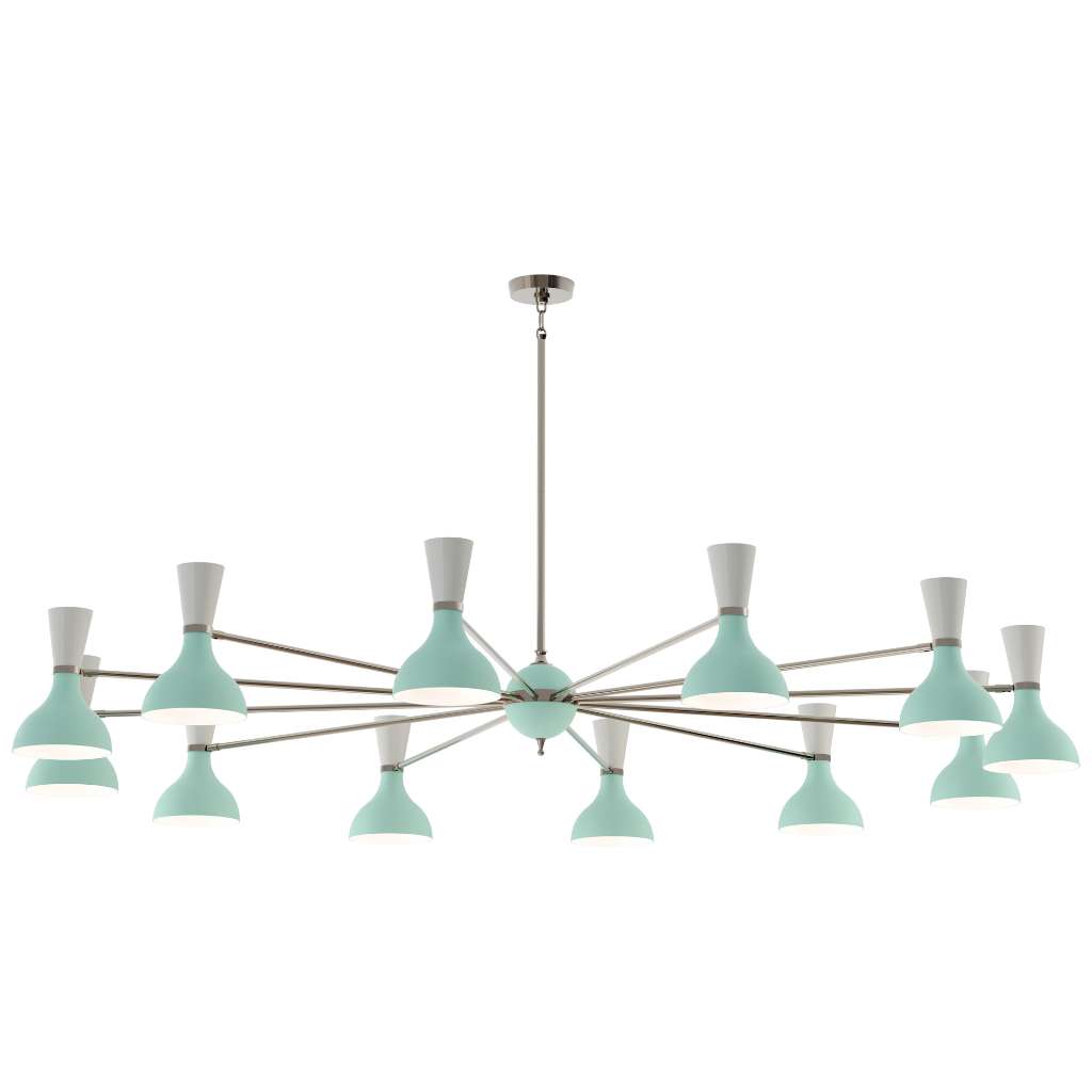 Polished Nickel Chandelier With Mint And Lily Painted Shades