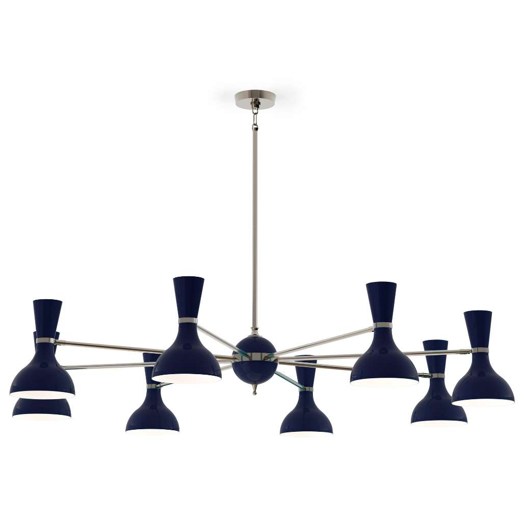 Polished Nickel Chandelier With Midnight Blue Painted Shades