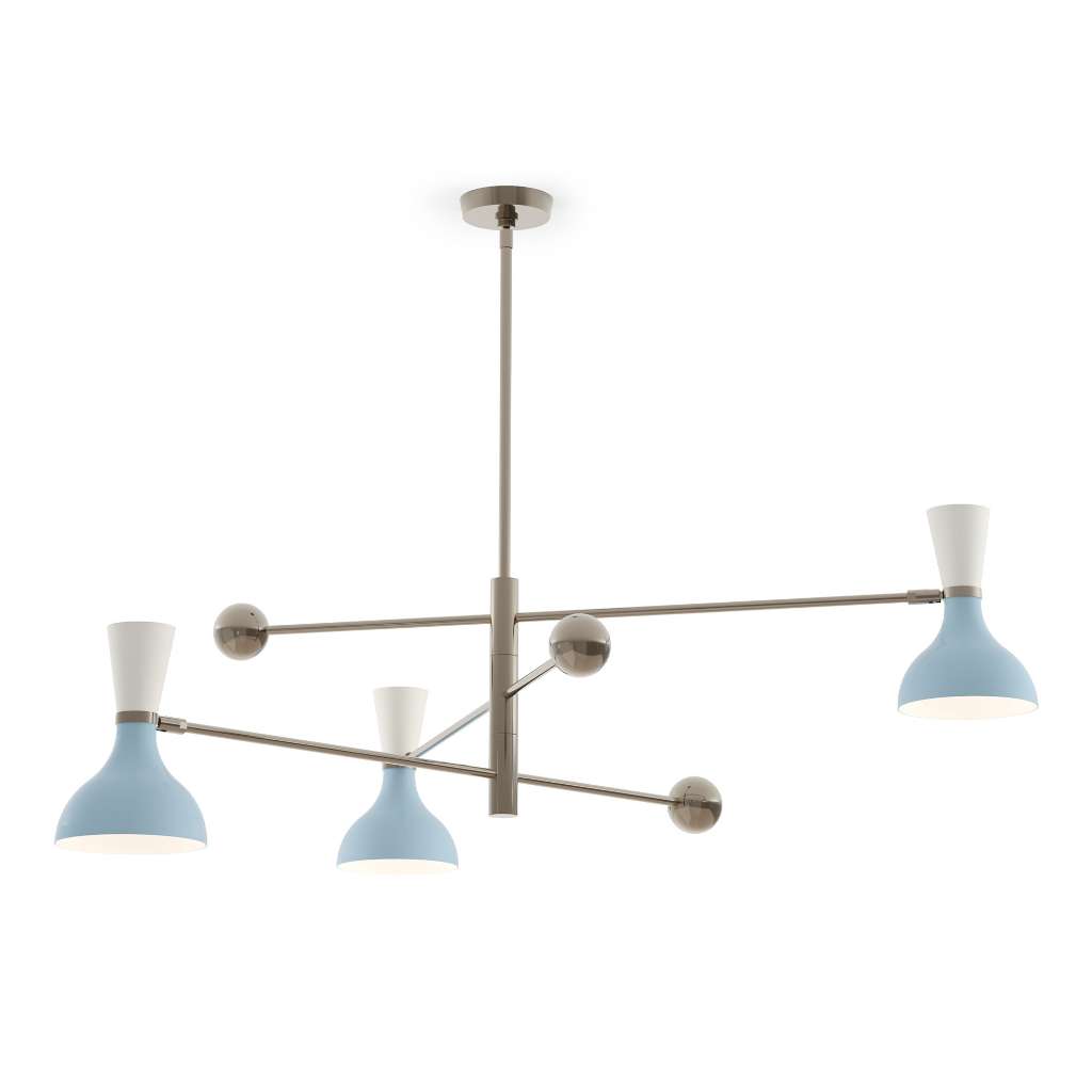 Polished Nickel Pendant With Baby Blue And Lily Painted Shade