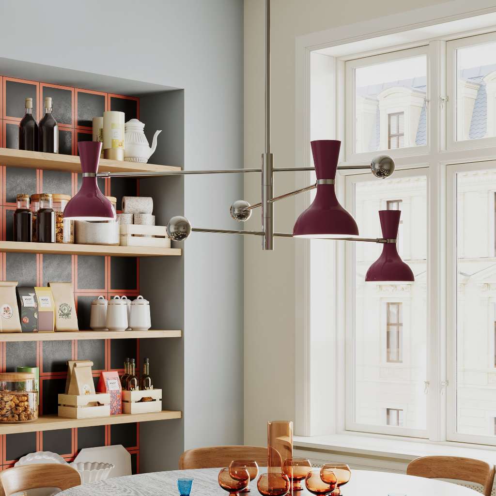Polished Nickel Pendant With Sugar Plum Painted Shade