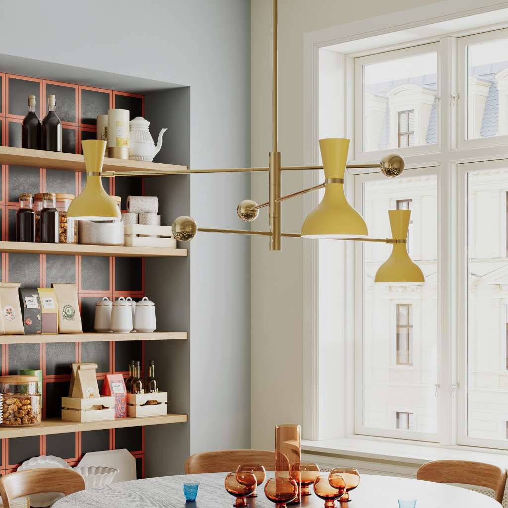 Modern Brass Pendant With Sunset Painted Shade