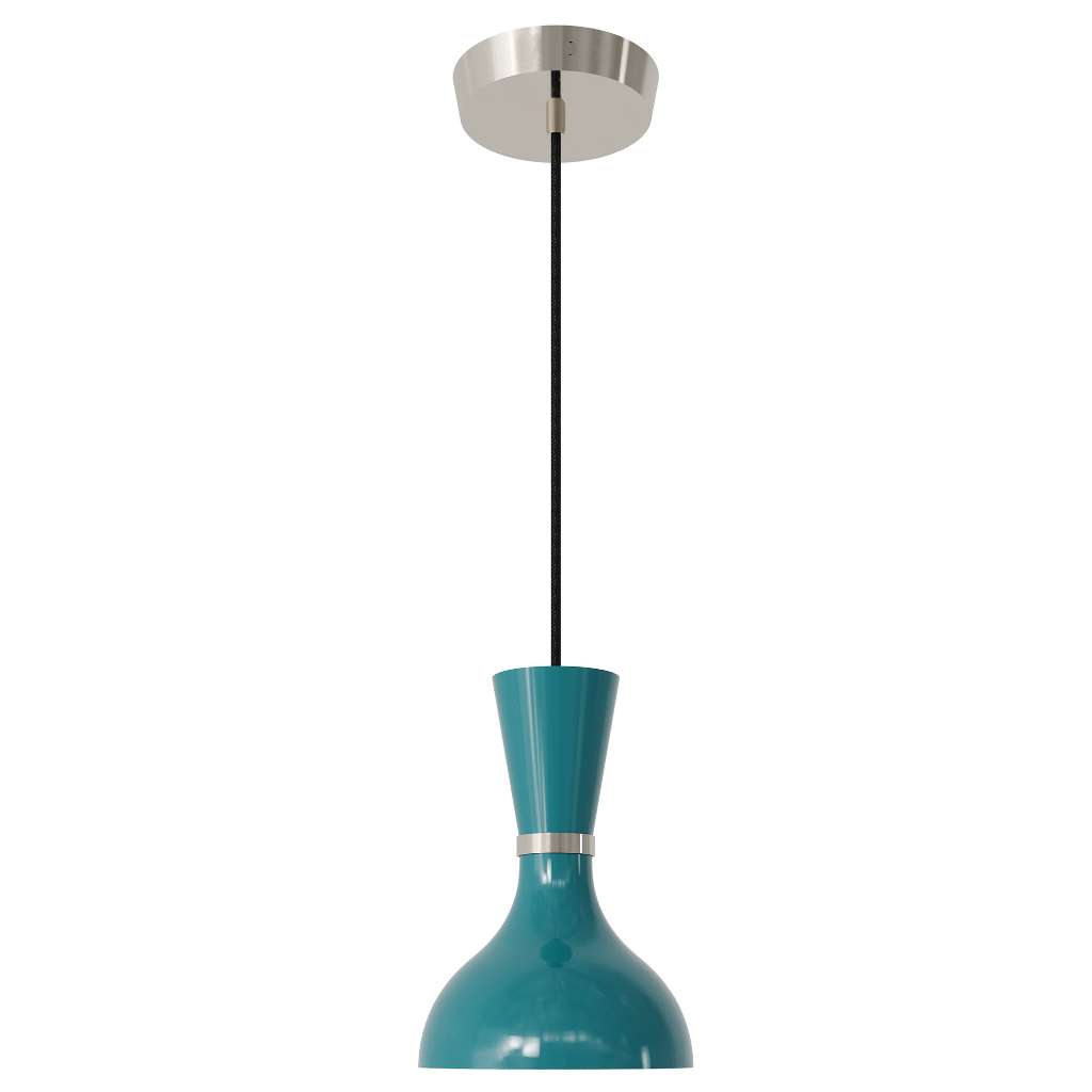 Polished Nickel Pendant With Peacock Painted Shade