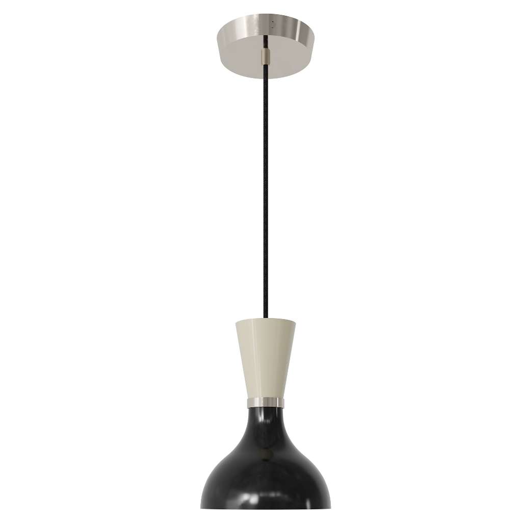 Polished Nickel Pendant With Obsidian And Bone Painted Shade