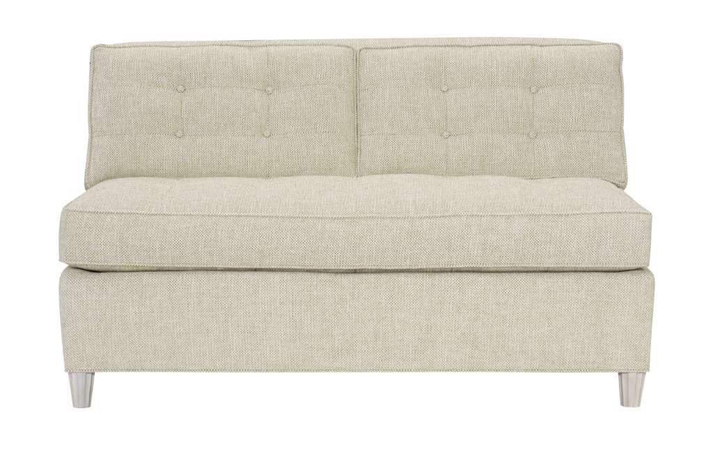 The Comstock sectional series features a Made to Measure Armless Sofa, a Right Arm Facing Chaise and a Left Arm Facing Chaise. Standard with a hand-tied button back and buttoned seat cushion, the Comstock presents a handsome profile. The RAF and LAF Chaises feature an elegant sloped arm that terminates in a vertical scroll. Made To Measure Armless can be ordered in 20" increments.