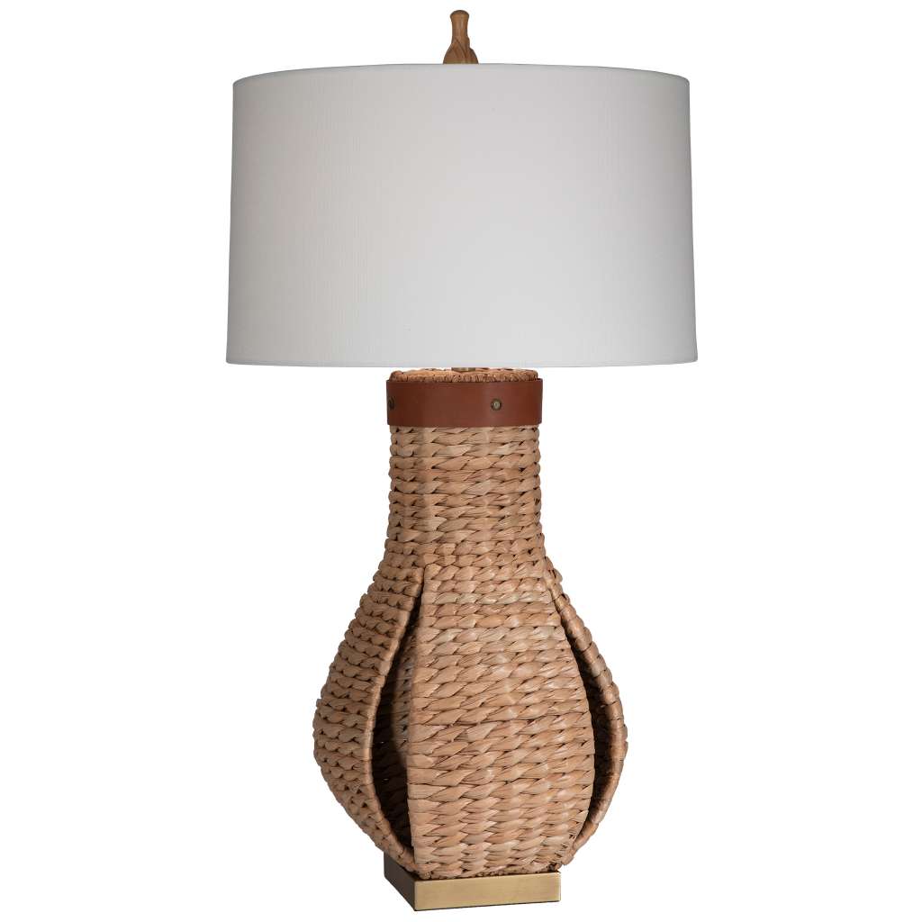 234- CORONADO 36″H Sea Grass and Leather Shade Options: CORONADO 89016 – 18x19x11″ Rnd Drum Sailcloth White 89014 – 18x19x11″ Rnd Drum Linen Oatmeal 89016 – 18x19x11″ Rnd Drum Sailcloth White 89014 – 18x19x11″ Rnd Drum Linen Oatmeal