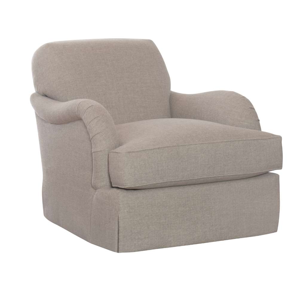 “Deep, and with a big personality,” David says of the Crowley Skirted Swivel Chair. Based on a classic sofa and lounge chair, the Crowley Skirted Swivel Chair and its companion Crowley Skirted Sofa have been updated with a modern sensibility. They feature a generously scaled English Arm and seat depth, crisp tailoring and an elegant dressmaker skirt. A companion Crowley Leg Sofa and Leg Chair are also available. Spring-Down seat cushion is standard.
