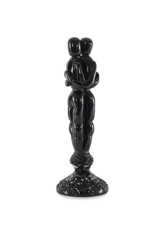W 4.5 D 4.5 H 13 Polished black crystal sculpture of two figures in an embrace. In Stock Buy Now